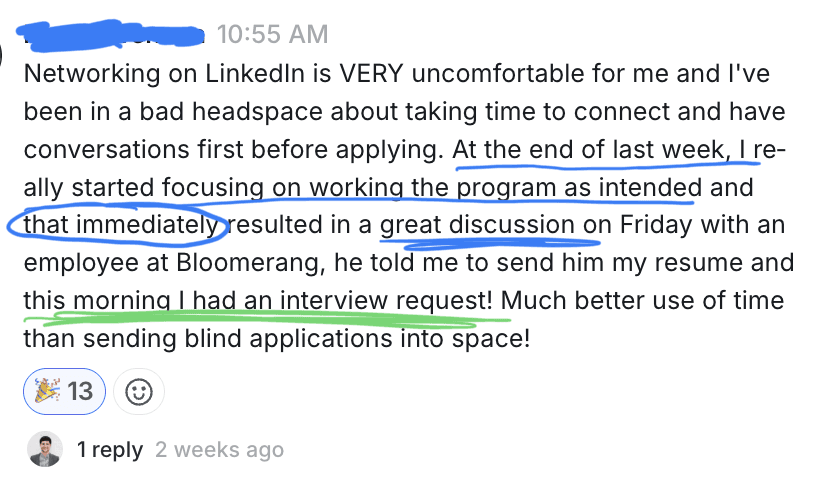 Networking on LinkedIn is VERY uncomfortable for me… At the end of last week, I really started focusing on working the program as intended and that immediately resulted in a great discussion… this morning I had an interview request! Much better use of time than sending blind applications into space!
