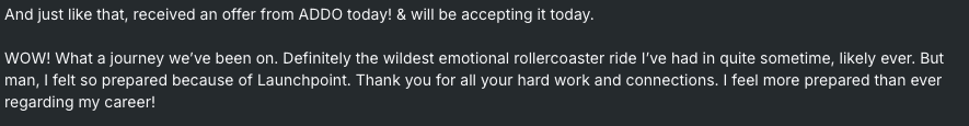 And just like that, received an offer from ADDO today and will be accepting it today!... I felt so prepared because of Launch Point.