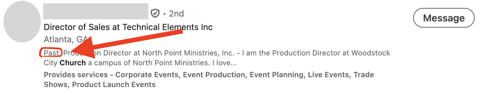 * You’ll see that LinkedIn will show you current vs past vs volunteer experience. You want to focus on the profiles that say “past.”