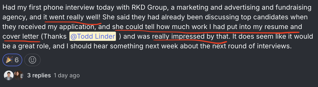 She could tell how much work I had put into my resume and cover letter and was really impressed by that.